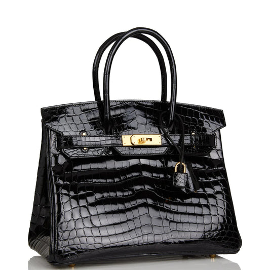 Hermès Birkin 30 Black Shiny Niloticus Crocodile Gold Hardware