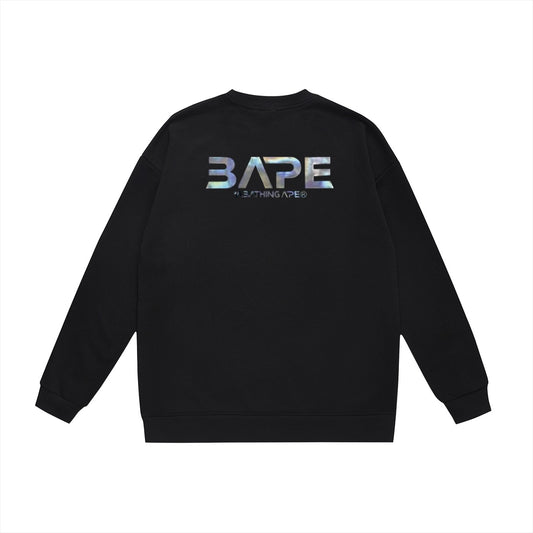 BAPE Mid-Autumn Moon and UFO Ape Head holographic logo graphic crewneck sweatshirt