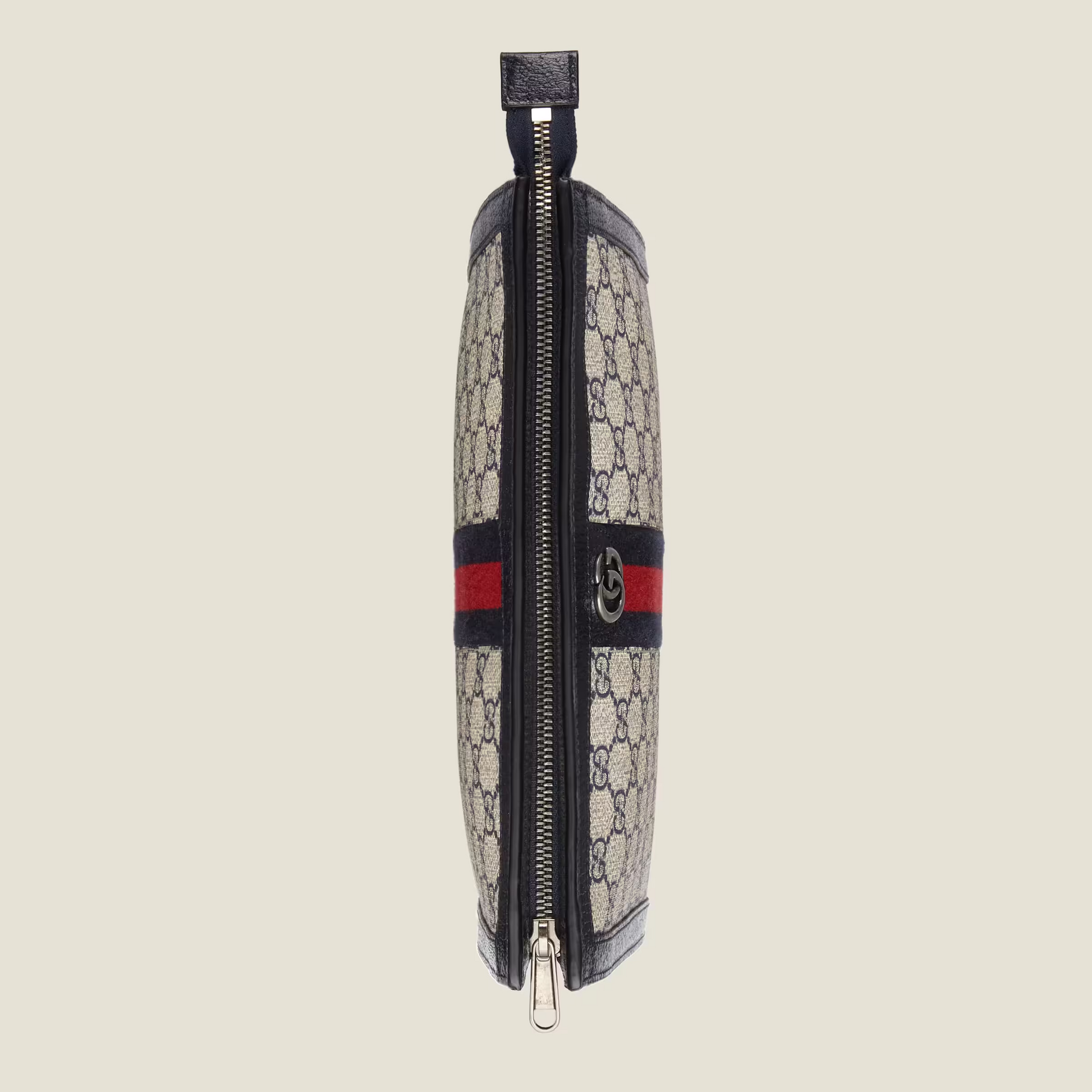 Mirroring the materials historic origins, is introduced in a timeless mix of blue and beige for Luxury Love Parade. The canvas has come to the front of each collection decade after decade to become a hallmark of the House. Here, the palette defines this slim pouch.