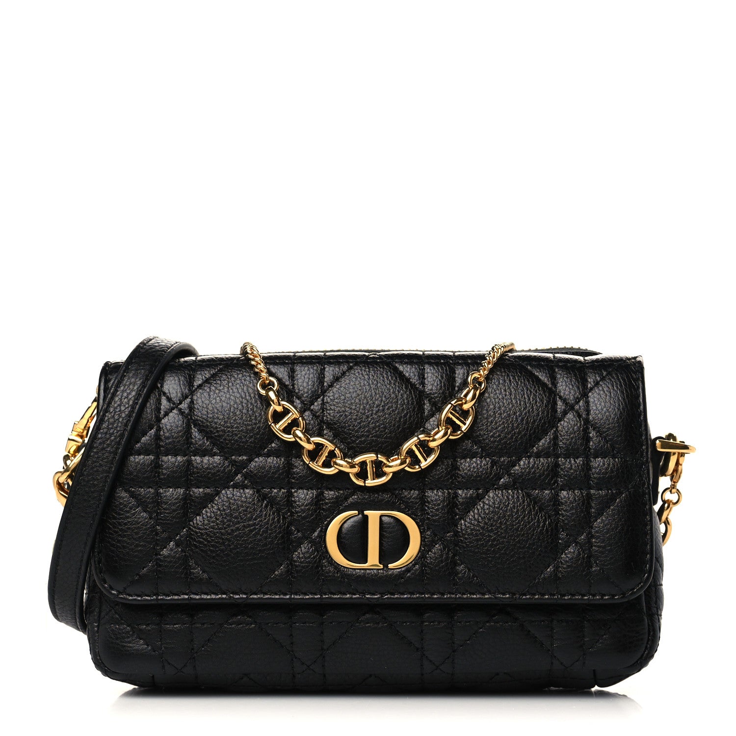 CHRISTIAN DIOR Calfskin Cannage Caro Pouch with Chain Black