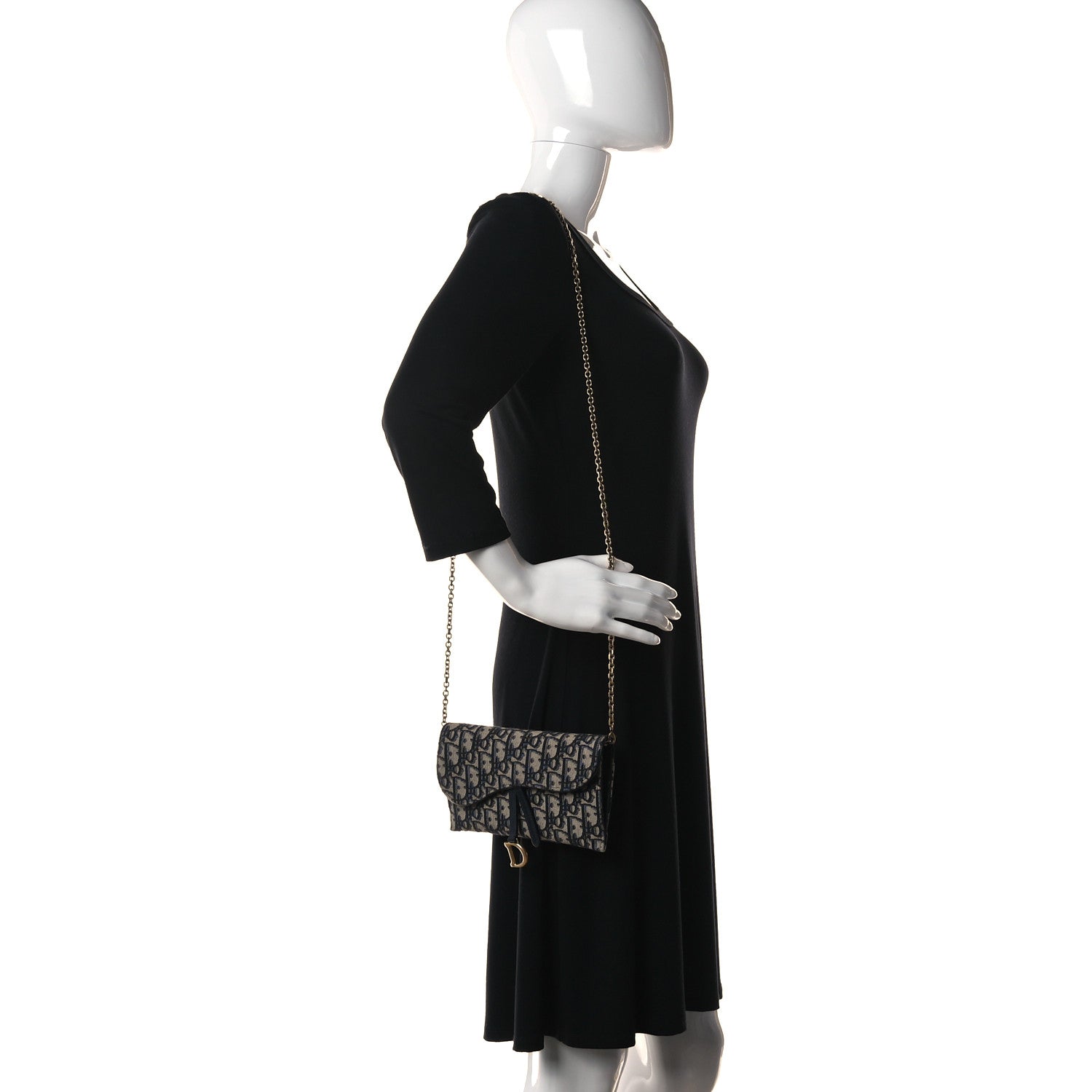 CHRISTIAN DIOR Oblique Saddle Chain Long Wallet Blue
