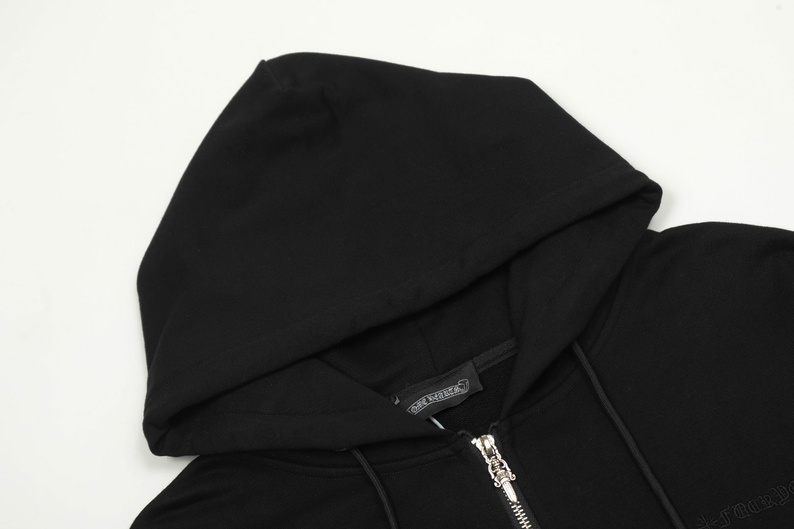 • Product Name: Chrome Hearts black embroidered and printed heavy-duty zip-up hoodie