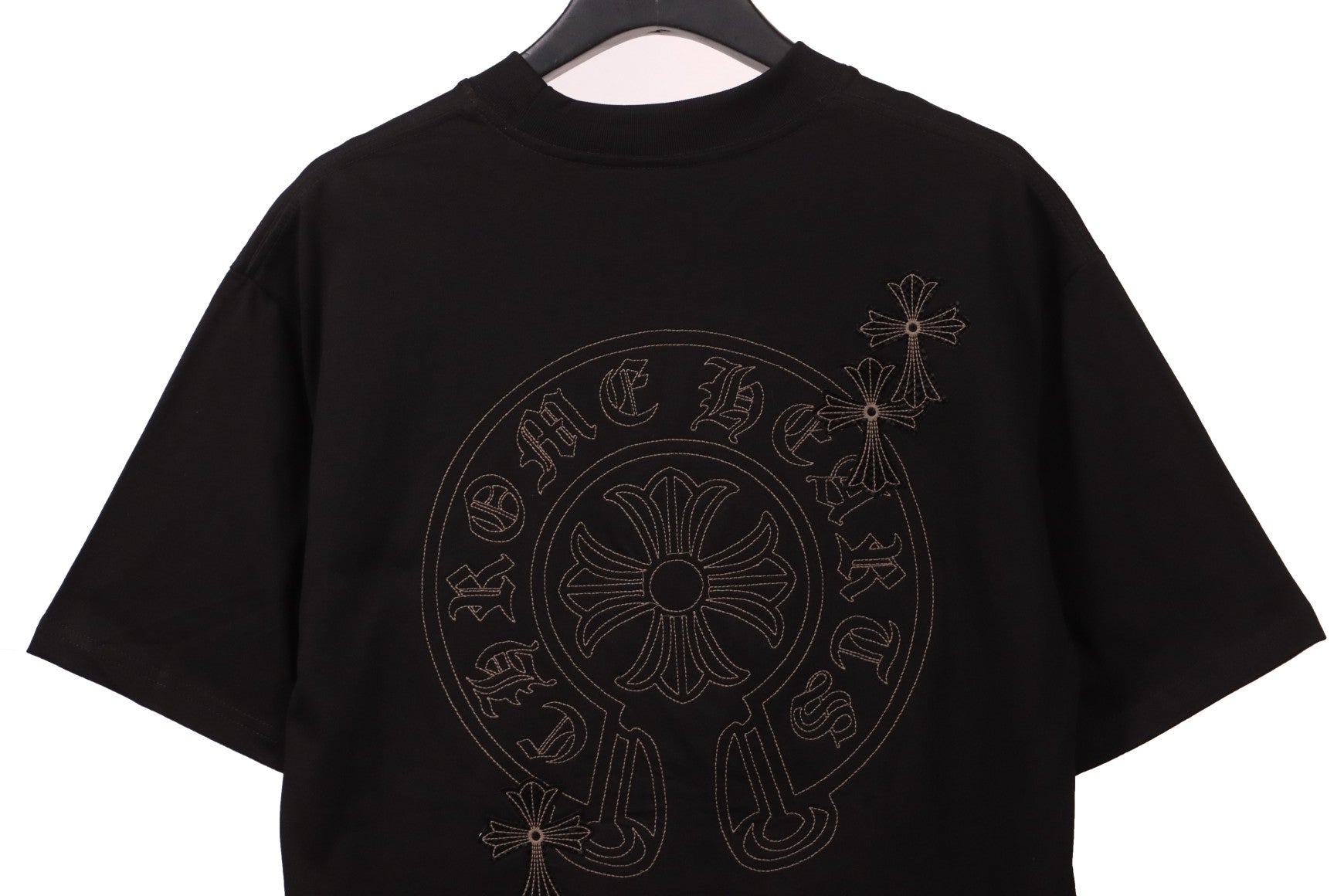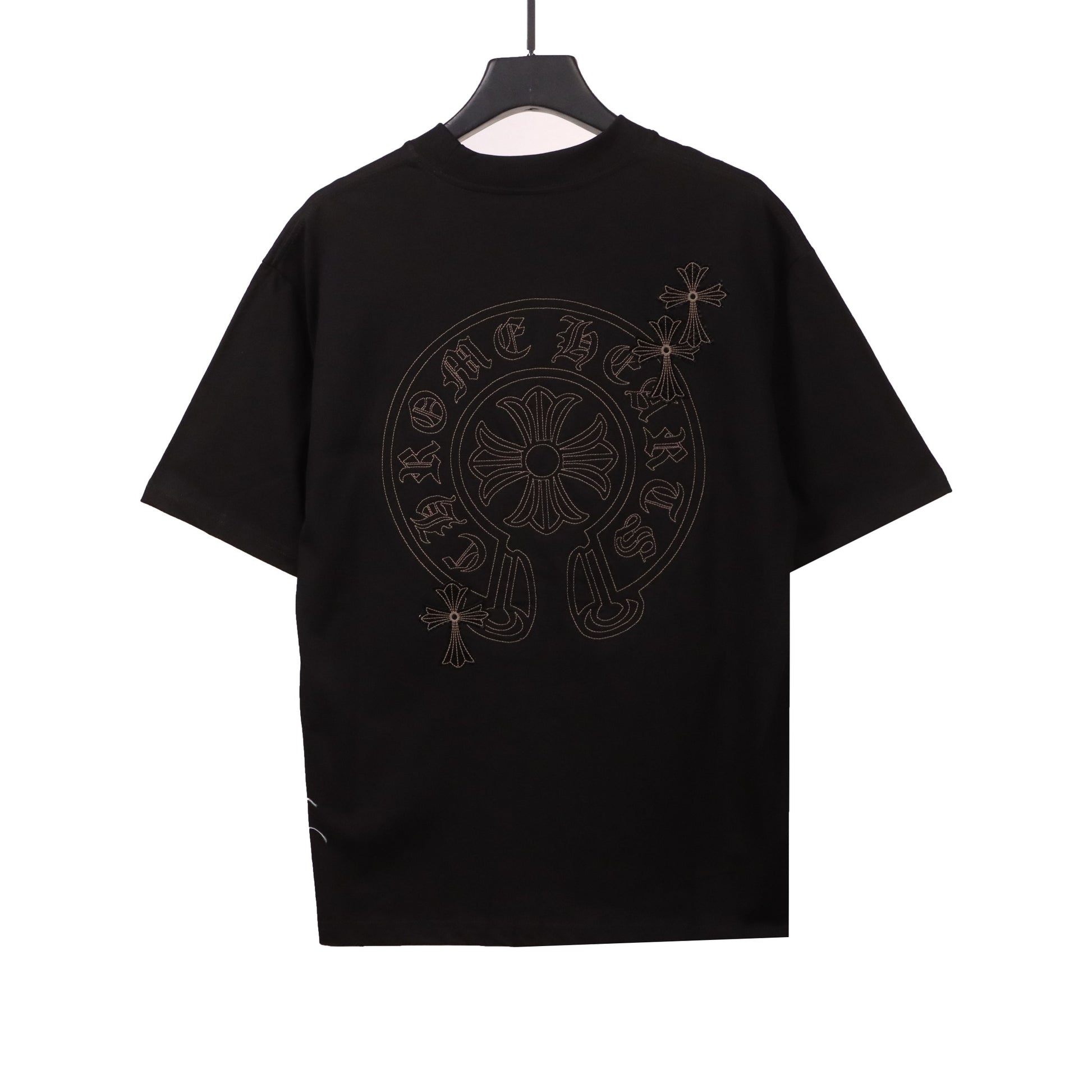 • Spring/Summer New Arrivals: Horsebit Print Cross Rhinestone Short-Sleeve T-Shirt, Fabric: 26 Double-Yarn + Heavy-Duty Bead-Dyed 300g