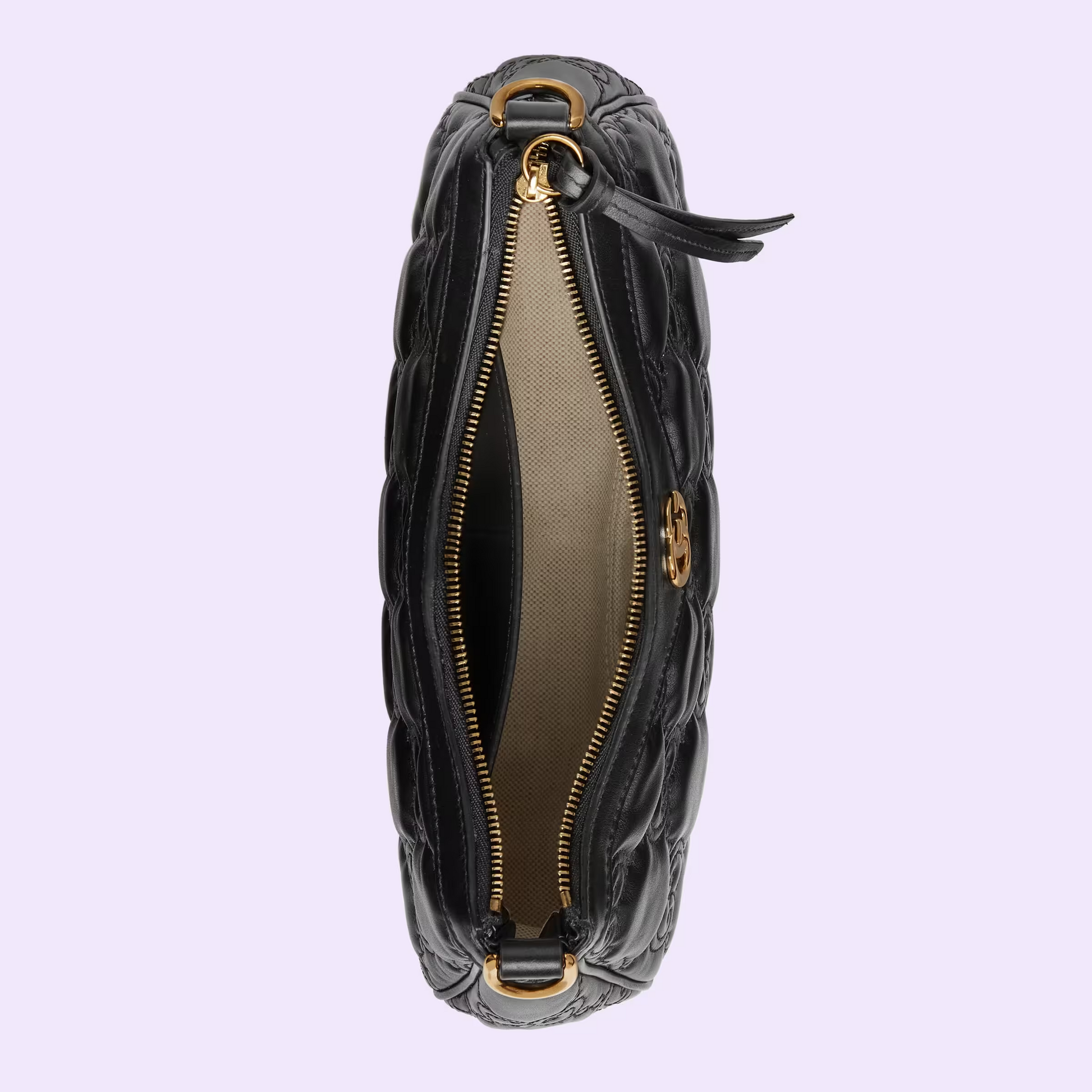 Matelassé leather is a signature material of the House, thanks to its super soft finish. The textured motif defines a selection of handbags, including this black leather bag. The Double G hardware decorates the front, continuing the logo feel of the design.