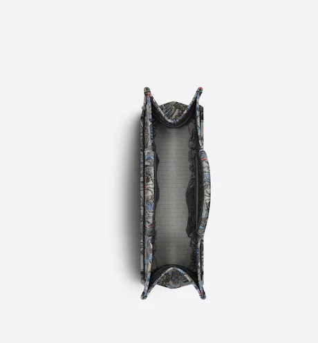 Introduced by Maria Grazia Chiuri, Diors Creative Director, the Dior Book Tote has become a staple of the Dior aesthetic. Designed to hold all the daily essentials, the style is fully embroidered with the denim multicolor Dior Jardin Magique motif, a bucolic and enchanting creation inspired by a magical world. The design is adorned with the CHRISTIAN DIOR PARIS signature on the front and exemplifies the Houses signature savoir-faire. The large tote may be carried by hand or worn over the shoulder.