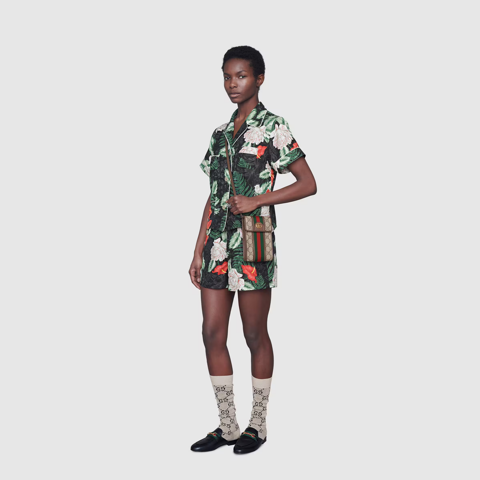 A new mini bag shape is presented within the collection, with a magnetic flap closure and removable snap button shoulder strap. First developed by Luxury in the 1950s, the Web stripe continues to pay homage to the Houses roots and equestrian influences, inspired by the strap that secured the saddle to the horse. Portrayed in its most notable combination of green and red, the stripe runs down the centre of the petite, shape in canvas. The style can be used as a phone bag.