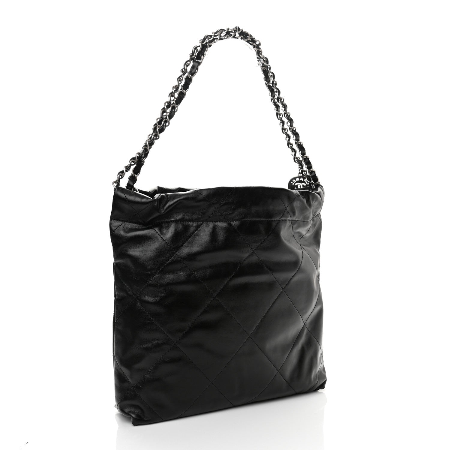 This is an authentic Luxury Small Luxury 22 in Black. This stylish handbag is crafted of diamond-stitched leather in black. The bag features leather threaded ruthenium shoulder straps and a matching Luxury logo on the front. The open top with magnetic closure leads to a black fabric interior with a pocket and a removable pouch.
