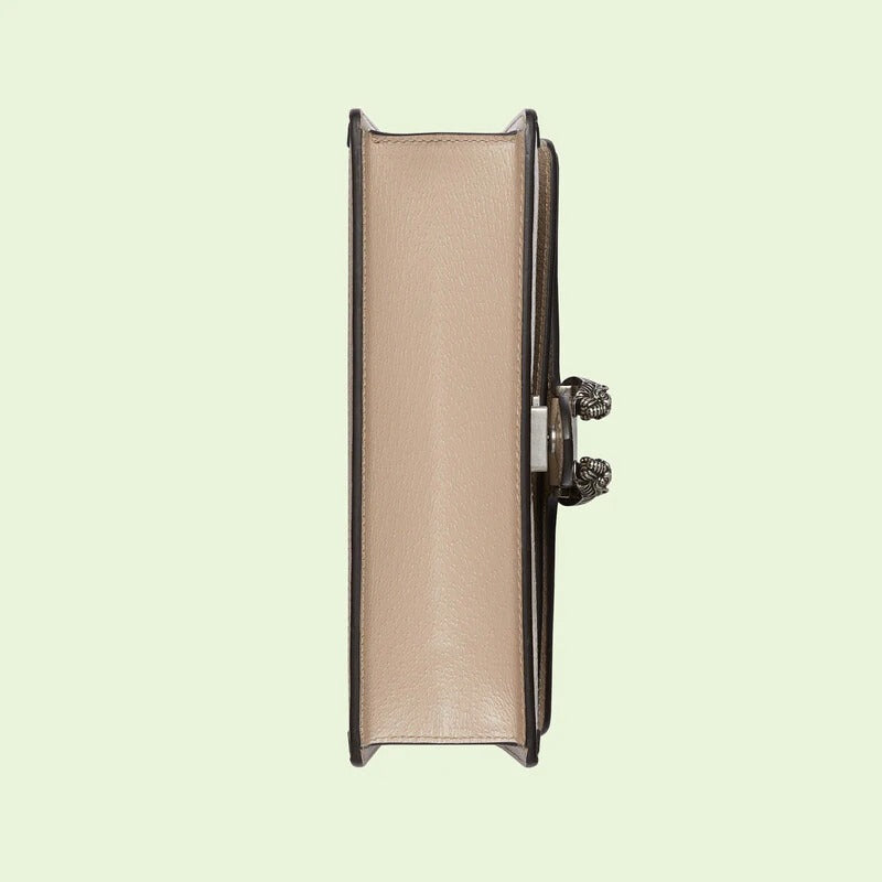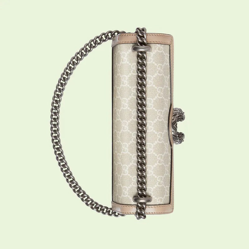 A heritage material from the archive, has been reimagined in Luxury Love Parade in different color combinations and combined with contemporary as well as styles. The is presented in a beige and white variation of the signature material with a tonal trim. Originally a play on a 30s design, the canvas speaks to the historical narrative that runs throughout the collection.