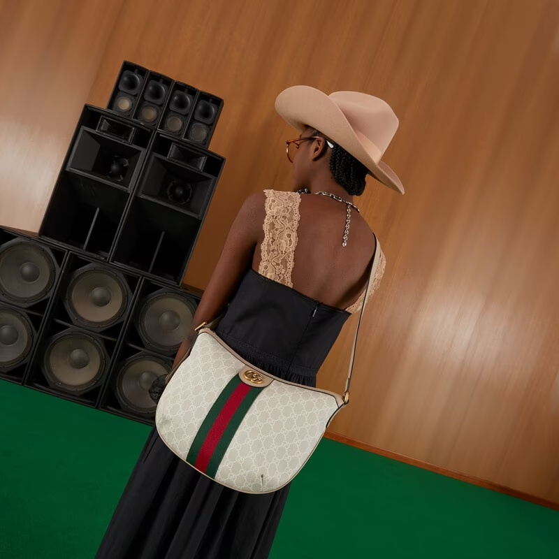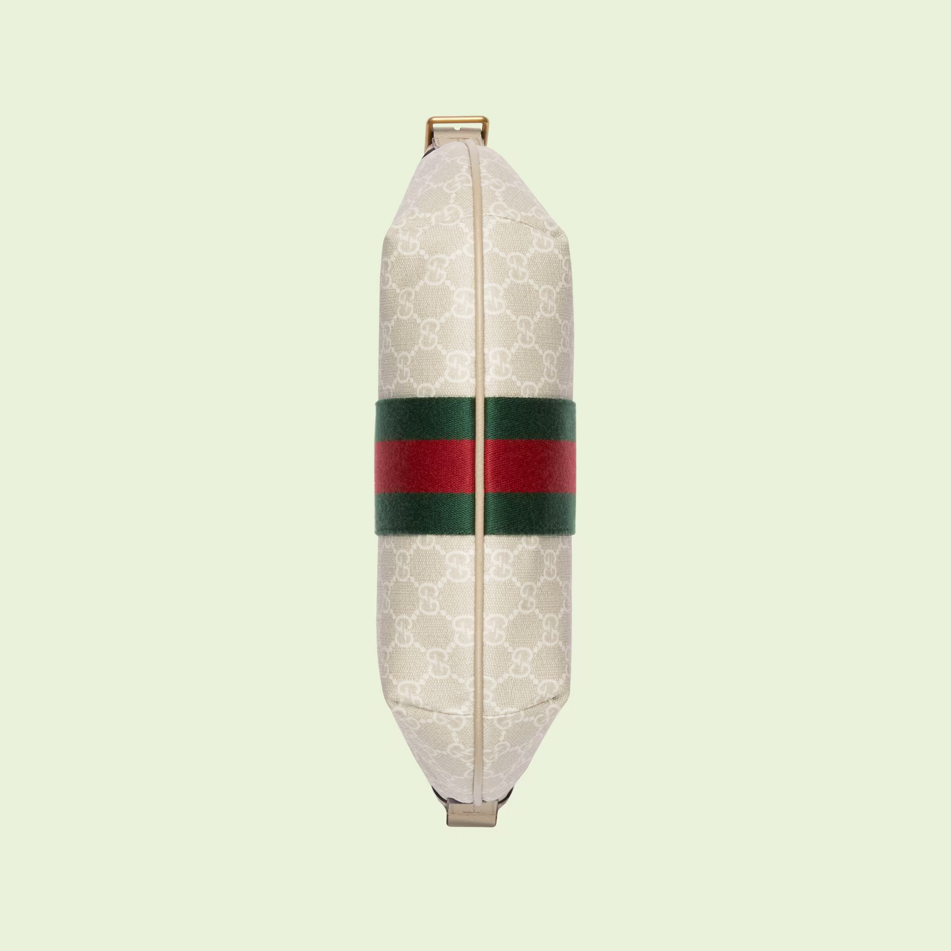 An archival design from the 1930s inspired the canvas, now one of the Houses most emblematic materials. Traditionally presented in beige and ebony, it appears here in a beige and white combination, an ode to timeless pieces and everlasting design. An oatmeal leather trim completes this shoulder bag, while the green and red Web detail adds a subtle reference to the House archives.