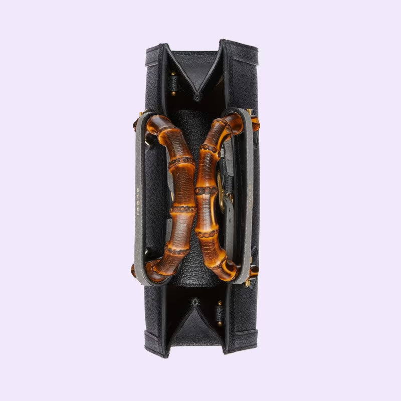 A new shape for Luxury Cosmogonie, the Luxury Luxury continues to combine recognisable elements of the House with the bamboo handles and Double G hardware. Crafted from black leather, the accessory is further accentuated by two decorative leather belts, a playful reference to the bands used to keep handles in shape.